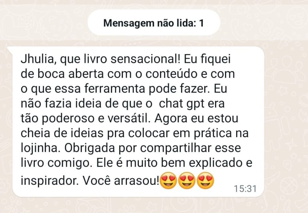 Pois saiba que tudo isso é possível com Desvendando o ChatGPT para negócios: Um guia prático para iniciantes, o eBook que vai te ensinar como usar o ChatGPT para impulsionar o seu negócio em 2025 sem precisar de terceiros.