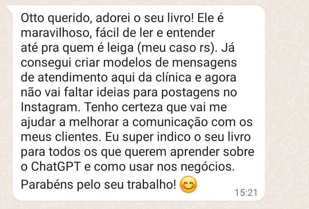 Este ebook é para qualquer pessoa que quer usar o ChatGPT no seu negócio, seja ele pequeno ou grande. Não importa se você é um empreendedor, um profissional liberal, um autônomo ou um profissional de marketing digital. Se você quer aprender como usar a inteligência artificial a seu favor, este ebook é para você.
